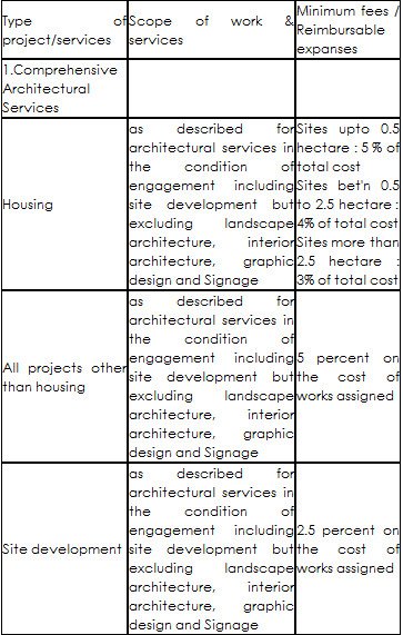 | Drawings for client / statutory approvals | 35 % of the total fees payable |
